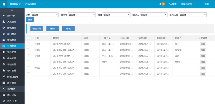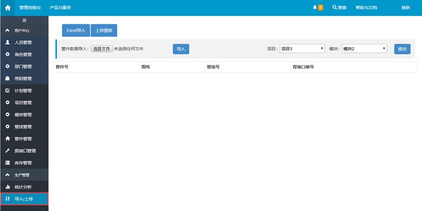 本軟件主要是對(duì)管線項(xiàng)目中的各個(gè)模塊進(jìn)行管理,方便用戶對(duì)管線項(xiàng)目中的人員、計(jì)劃、模塊、管線、管件等模塊進(jìn)行管理,可以將excel表格中的管線的數(shù)據(jù)導(dǎo)入,或者將管線的數(shù)據(jù)以excel表格的形式導(dǎo)出。