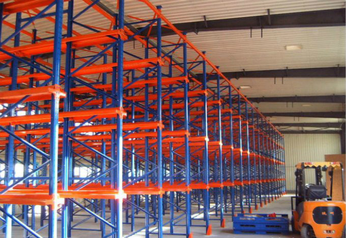 貫通式倉儲(chǔ)貨架取消了普通托盤式倉儲(chǔ)貨架各排之間的通道,叉車直接進(jìn)入貨架內(nèi)部作業(yè),叉車作業(yè)通道和貨物存儲(chǔ)空間共用,將原本的通道空間節(jié)省了下來,提高了倉庫空間利用率。