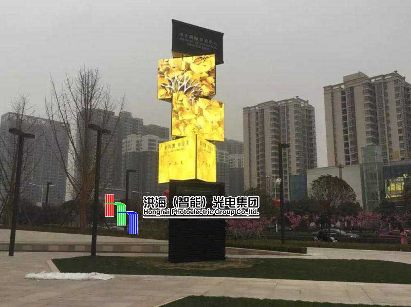 此戶外三棱led魔方柱旋轉(zhuǎn)屏工程由洪海光電公司設(shè)計并制作,該工程施工于陜西西安 中大國際商圈的戶外廣場上,是由底座、三個三棱led顯示屏柱體及頭部三部分組成,西安 led旋轉(zhuǎn)魔方屏的總高度是9.44米,為p6像素 ,每個柱體的規(guī)格是2.4米*1.68米,柱體在旋轉(zhuǎn)時可實現(xiàn)順時針、逆時針、螺旋翻轉(zhuǎn)等多種翻轉(zhuǎn)方式,其旋轉(zhuǎn)動作與顯示畫面的完美結(jié)合,使得西安 三棱魔方柱更具動感美,從而鎖住了更多人們的視線。洪海光電專業(yè)致力于室內(nèi)外新廣告 媒體設(shè)備的研發(fā)設(shè)計,目前在研發(fā)團(tuán)隊的共同努力下,led旋轉(zhuǎn)屏、led變形屏、led升降屏、led旋轉(zhuǎn)魔方柱等相繼在市場上出現(xiàn),歡迎實地考察參觀。