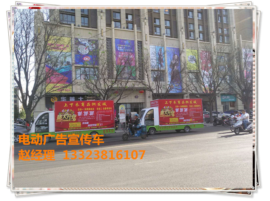 雖說成功有份很多類,可是事業(yè)的成功是大家都向往的。在如今的社會(huì)情況下要把事業(yè)做成功,需要有勇氣、機(jī)遇以及才能這其中任意一項(xiàng)都不能缺少。在如今就業(yè)困難的情況下我們?cè)撊绾握业侥繕?biāo)呢?很多人都會(huì)選擇一個(gè)好的行業(yè)去創(chuàng)業(yè),雖然不一定創(chuàng)業(yè)就能成功,可是不創(chuàng)業(yè)就連不一定的可能性都沒有了。最近有看到很多新聞,都是在講很多大學(xué)生大學(xué)畢業(yè)做的不是自己專業(yè)的公司,而是去選擇創(chuàng)業(yè)。其中不乏做的不錯(cuò)的人,他們就是有這樣的勇氣和抓住了這樣的機(jī)遇,從而走向了成功。而我們?nèi)鹂齐妱?dòng)公司生產(chǎn)的電動(dòng)廣告 車是一款專為創(chuàng)業(yè)人士準(zhǔn)備的宣傳設(shè)備,因?yàn)樗邆渲顿Y低回報(bào)大的特點(diǎn),深受很多創(chuàng)業(yè)者的青睞。