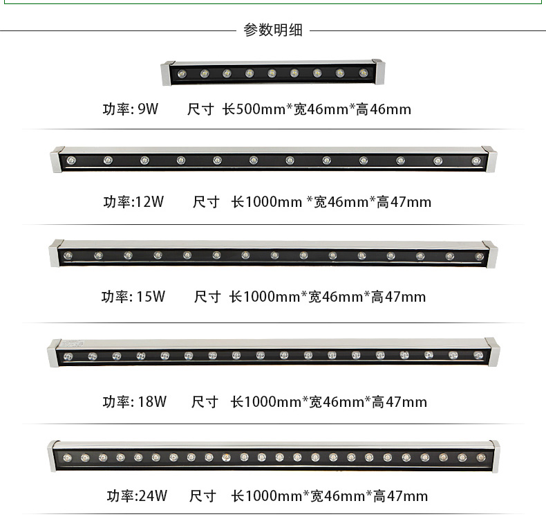 led洗墻燈采用進(jìn)口壓鑄鋁材,表面氧化處理 超強(qiáng)的抗腐蝕性、抗壓性,卓越的防水性,內(nèi)部孔位全防水,采用先進(jìn)的硅膠灌封技術(shù)灌封及結(jié)構(gòu)防水技術(shù),耐150度以上高溫、不老化、燈體密封性好,采用高透光鋼化玻璃,安 全性好,品質(zhì)有保障