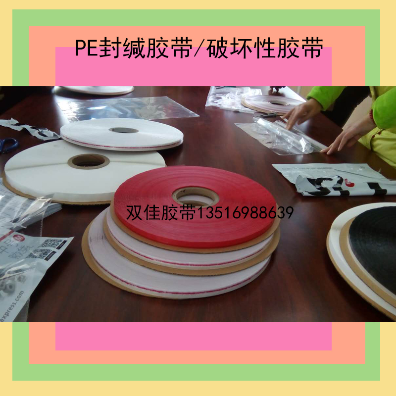 破壞性雙面膠帶與普通封緘膠帶相似,里面涂布比離型膜窄的膠條,因此易于撕除離型膜;同時(shí)具有超強(qiáng)的表面粘著力,長效的保持力,良好的熱穩(wěn)定性以及破壞性的特性,所以只能一次性使用。適用于郵件袋、快遞袋、保密袋、產(chǎn)品包裝袋等各種塑膠袋封口,粘合后只有破壞包裝才能接觸其中物品,起到良好的保密作用。