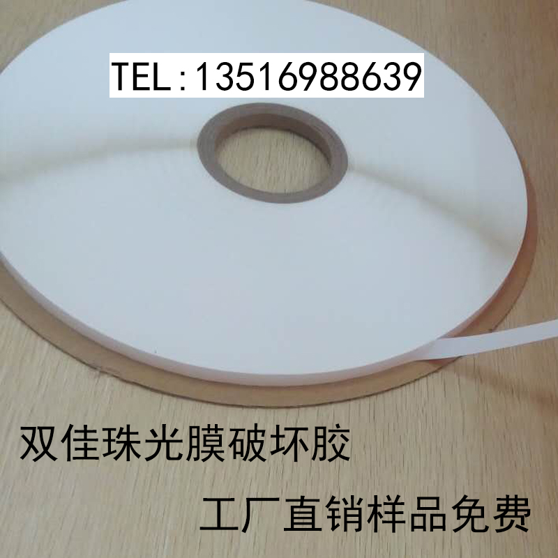 破壞膠帶由四部分組成:珠光膜、熱熔膠、油膠、pet,主要用于pe袋的封口或opp重包裝袋封口,起破袋作用