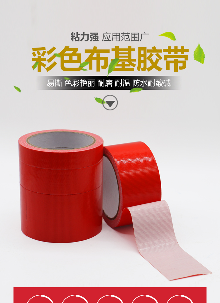 【關(guān)于定制】:本公司大量生產(chǎn)多色布基膠帶,可根據(jù)客戶要求規(guī)格定制,量大更優(yōu)惠!