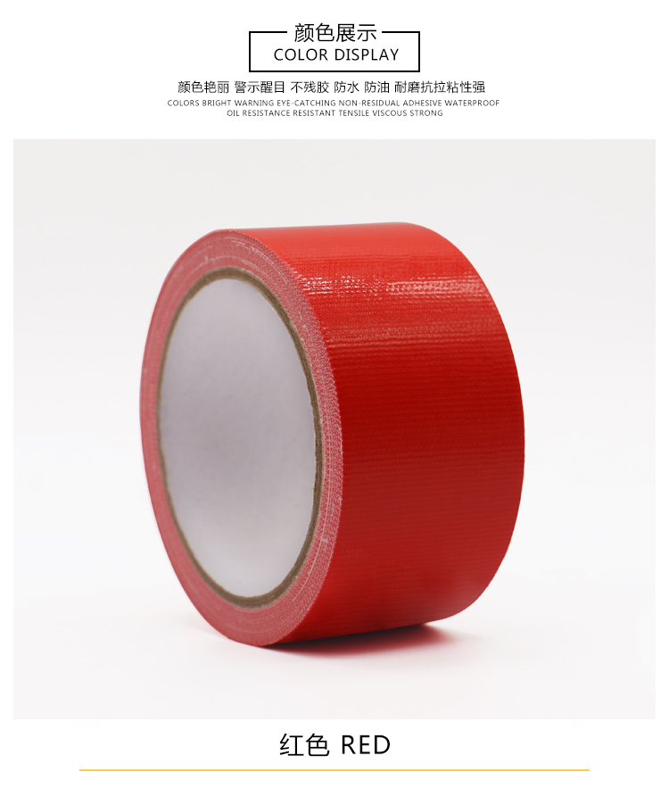 2、顏色標(biāo)識(shí)功能:布基膠帶顏色比較豐富,種類齊全?梢赃\(yùn)用在不同場(chǎng)合,進(jìn)行區(qū)分標(biāo)識(shí)開來(lái)。