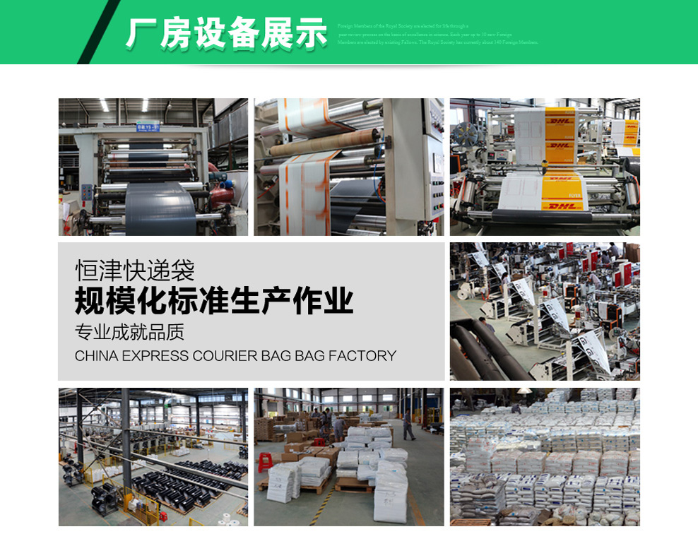 恒勁寶擁有世界先進的海堡德四色對開印刷機械設(shè)備,高效,質(zhì)優(yōu),產(chǎn)品制作工藝先進,批量制作生產(chǎn)效率高,采用熱切工藝,封邊牢固,不易開膠,質(zhì)量有保證。我們的塑料快遞袋成本較低,韌性好,耐磨性高,價格便宜,由可回收再生料制作而成,無印刷,不透明。