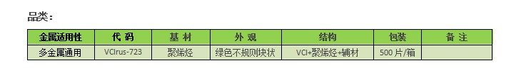 本產品是將優(yōu)質復配氣相緩蝕劑 與高分子聚合體混合,依科學配方經由特殊工藝流程生產的新型自粘式氣相防銹產品,是氣相防銹應用領域的新拓展和新突破。氣相防銹發(fā)散體在密封空間內通過自身不斷揮發(fā)的vci緩蝕因子,升華擴散至金屬表面并附著其上,形成單分子厚的保護層,既隔絕了大氣腐蝕因素 與金屬表面的直接接觸,又阻止了不同能量區(qū)的電子流位移運動,從而有效地避免銹蝕的產生