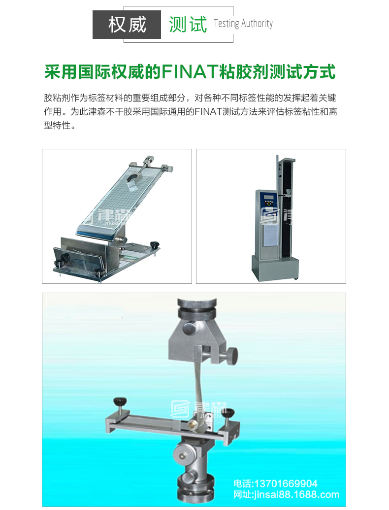 膠粘劑 作為標簽 材料的重要組成部分,對各種不同標簽 性能的發(fā)揮起著關鍵作用。為此津森不干膠采用國際通用的finat測試方法來評估標簽 粘性和離型特性。
