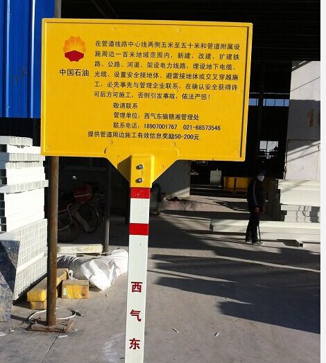 玻璃鋼標(biāo)志牌 公路里程分界樁電力專(zhuān)用玻璃鋼警示牌,中石油燃?xì)夤艿缿敉鈽?biāo)志牌,擠出玻璃鋼工藝。由于受制于工藝要求,擠出玻璃鋼表面不平,有氣孔,所以對(duì)反光膜的粘接力不足。所以也不適宜做交通標(biāo)志底板。 模壓玻璃鋼。模壓玻璃鋼是在高溫高壓下成型的,表面平,對(duì)反光膜的附著力滿足要求。按交通部測(cè)試反光膜對(duì)標(biāo)志底板附著性能的實(shí)驗(yàn),實(shí)驗(yàn)5分鐘后,反光膜的剝離長(zhǎng)度為3-4mm,大大小于標(biāo)準(zhǔn)要求的20mm。