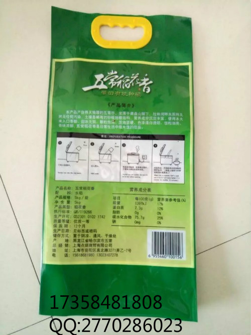 越來(lái)越受歡迎的塑料真空大米包裝袋廣泛用行大米及五谷雜糧的包裝,如五常粳米,稻花香大米等的包裝。