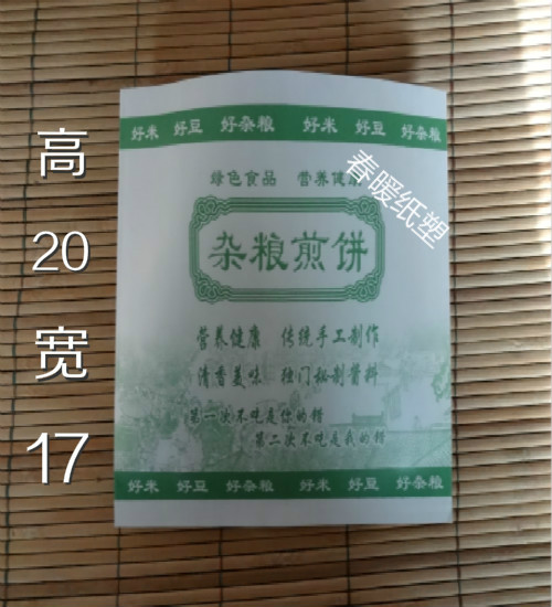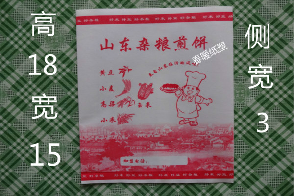 公司本著從市場(chǎng)實(shí)際出發(fā),備有大量通用版的現(xiàn)貨,以備客戶急用,還可按客戶的要求來設(shè)計(jì)圖案、商標(biāo)、公司logo、以及地址、電話、廣告 語、產(chǎn)品介紹等不同的煎餅果子紙袋