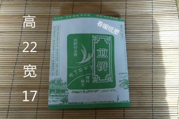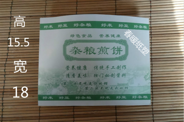 該煎餅果子紙袋自投入市場(chǎng)以來,因以環(huán)保衛(wèi)生、設(shè)計(jì)精美、售價(jià)低廉、防油防潮、易于攜帶等特點(diǎn)深受廣大使用者的喜愛,迅速占領(lǐng)了煎餅果子包裝市場(chǎng)。 同時(shí),公司為滿足不同客戶需要,開發(fā)出對(duì)折和中封兩種不同工藝的煎餅果子袋,前者為袋子開口處不齊,以便于使用者很容易打開袋子,方便把東西放進(jìn)去。后者其特點(diǎn)為結(jié)實(shí)牢固,而且可以做出墻子,具有強(qiáng)烈的立體感。在印刷方面,均采用水墨印刷,已達(dá)到真正地環(huán)保效果。