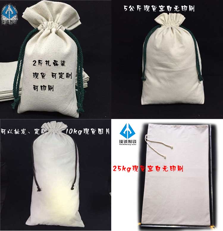 現(xiàn)貨批發(fā)規(guī)格有2.5kg,5kg,10kg,25kg裝的棉布、帆布面粉 包裝袋,均為空白無(wú)印刷