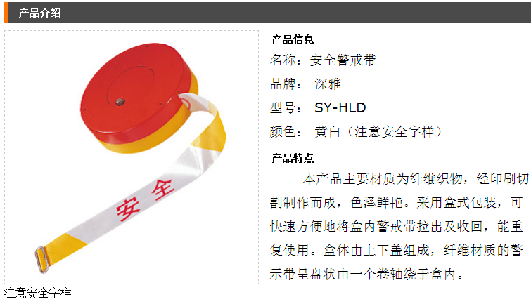 本產(chǎn)品主要材質(zhì)為纖維織物,經(jīng)印刷切割制作而成,色澤鮮艷。采用盒式包裝,可快速方便地將盒內(nèi)警戒帶拉出及收回,能重復(fù)使用。廣泛用于突發(fā)事件或施工區(qū)域及危險(xiǎn)地段的現(xiàn)場警戒、隔離。