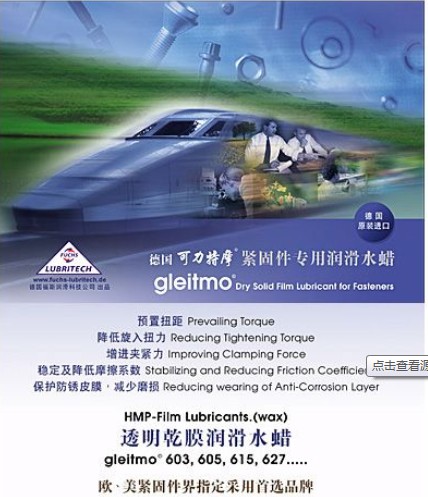 gleitmo 615 提供高潤滑效能的低摩擦薄膜,是緊固件工業(yè)中最經(jīng)濟實用的潤滑披覆涂層。其能降低并穩(wěn)定緊固件摩擦系數(shù),使摩擦系數(shù)均值化、離散度最小化,在業(yè)界亦被稱為「摩擦系數(shù)穩(wěn)定劑」。