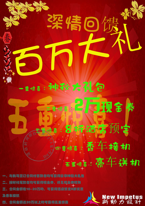 一年豐收之季,為感謝新老客戶對新動力展覽公司的支持和幫助,也為了在寒冷的冬天給予朋友們無限的溫暖,現(xiàn)新動力展覽公司特舉辦以下活動,詳情如圖所示。