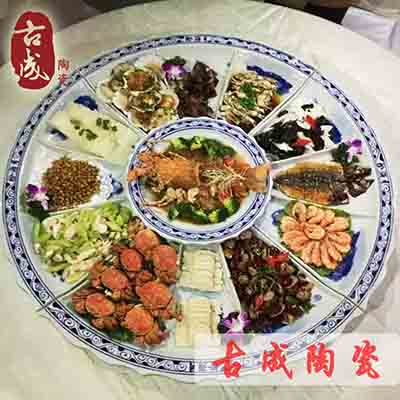 景德鎮(zhèn)古成陶瓷自成立以來(lái),推出海鮮大瓷盤,F(xiàn)已為廣東,浙江,江蘇等地的多家酒樓定制過(guò)海鮮大瓷盤、海鮮大瓷盤的特色以巨型瓷盤與其獨(dú)特的餐飲風(fēng)格,獨(dú)特的飲食氣氛,形成了一道特色的招牌菜系。海鮮大瓷盤深受廣大客戶的追求和喜愛。我廠生產(chǎn)的海鮮大瓷盤畫面是采用景德鎮(zhèn)傳統(tǒng)手工繪制的。畫面有富貴牡丹、江南水鄉(xiāng)、亭臺(tái)樓閣、青花山水等經(jīng)典畫面,畫面可以根據(jù)客戶需求定做。海鮮大瓷盤的主體工藝制作,采用全手工制作。海鮮大瓷盤的原料必須采用景德鎮(zhèn)原產(chǎn)的高嶺土(高白泥)以及獨(dú)有的傳統(tǒng)手工拉坯工藝成型。因此制作海鮮大瓷盤都是老師傅手工拉坯。修胚待泥胚干燥后,純手工繪制圖案。這是現(xiàn)代貼花工藝不可企及的。而這僅僅是其中的一部分,海鮮大瓷盤最后成型取決與窯火燒制(古有十窯七不成的說(shuō)法)就像我們制作10塊150公分的瓷盤就必須要準(zhǔn)備15塊泥胚。甚至可能會(huì)更多。可想這不僅是我們?nèi)沼玫拇杀P。更多的是一件藝術(shù)品。