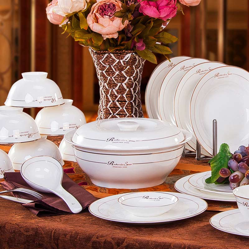 景德鎮(zhèn)市合元陶瓷有限公司專業(yè)品質(zhì),批發(fā),定制景德鎮(zhèn)餐具套裝,景德鎮(zhèn)餐具套裝可印制企業(yè)商標(biāo),廣告 宣傳,文字等,可按照需求定制。景德鎮(zhèn)餐具套裝是餐具組合,一般包括盛盤、碟子、碗、筷、筷架、湯勺等用具,由廠家制成統(tǒng)一風(fēng)格的餐具組成套裝。景德鎮(zhèn)餐具套裝普遍配置有28頭、38頭、56頭等,風(fēng)格多種,有中式、日韓、歐式、西式等等。景德鎮(zhèn)餐具套裝做工精美,安 全包裝,是您居家必備,饋贈(zèng)好友之佳品,同時(shí)也可定做商務(wù)餐具禮品贈(zèng)送給客戶。景德鎮(zhèn)餐具套裝圖案款式多樣化,更是經(jīng)過高溫1380度燒制而成,健康環(huán)保,簡潔易清洗。
