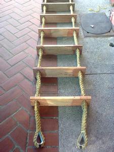 登乘繩梯和引航員梯最下面四塊板為橡膠踏板,登乘繩梯全部由525*115*25mm規(guī)格的短踏板及繩索三角木組成,引航員梯除了短木板,三角木繩索以外,每隔6塊踏板含一塊1800*115*25mm的止扭踏板。