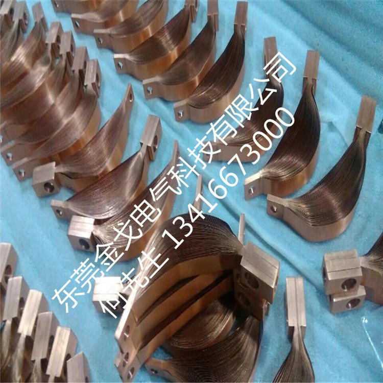 參數(shù):該參數(shù)值與軟連接的安 裝和使用條件相關(guān),可完全根據(jù)用戶參數(shù)、規(guī)格要求加工生產(chǎn),接觸面可鍍錫或鍍銀 本公司銅箔軟連接圖片:
