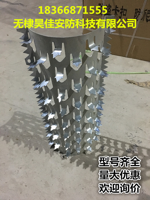 我公司生產(chǎn)各種規(guī)格燃?xì)夤艿婪琅婪辣I刺、下水管道防爬防盜刺、圍墻防爬防盜刺。如今小區(qū)的居民樓外墻的水管與陽(yáng)臺(tái)設(shè)計(jì),十分有利于小偷。 的攀爬:水管直徑足有10厘米粗,豎立在外墻上,與陽(yáng)臺(tái)窗戶之間相距盡10厘米這種墻的外部設(shè)計(jì)像梯子,小偷爬水管三步兩腳就到樓上了,太不安 全。業(yè)內(nèi)人士認(rèn)為人防是基礎(chǔ),技防才是根本,不能單單依靠物管、保安 及公安 民警,還要增加設(shè)施上的改進(jìn)。為此我公司研發(fā)出一種叫管道防爬防盜刺的產(chǎn)品,獲得國(guó)家專利。專利號(hào)為:zl201220510988.2 。它可以安 裝在一樓和二樓之間的外墻下水管道或者燃?xì)夤艿、窗臺(tái)、陽(yáng)臺(tái)、空調(diào)、圍墻上,盜賊根本不能繞過防盜刺往上攀爬。小區(qū)裝上防盜刺,這樣就杜 絕了小偷偷盜的可能。