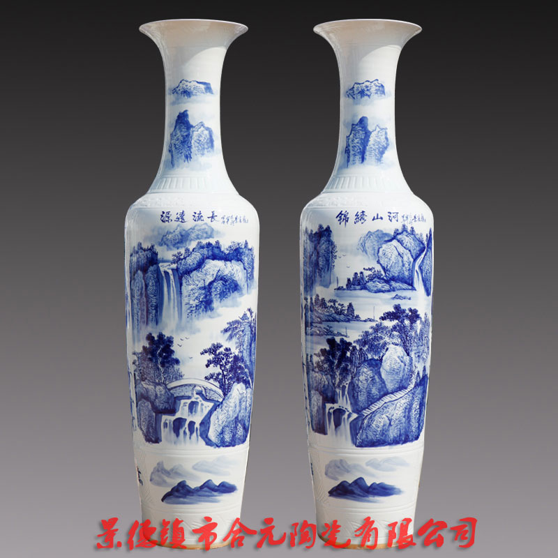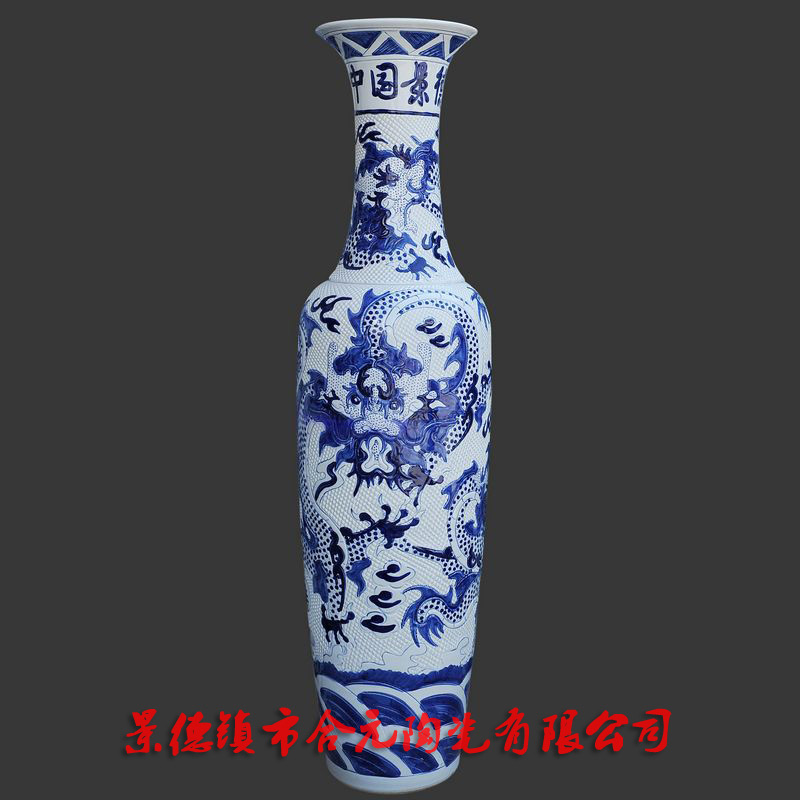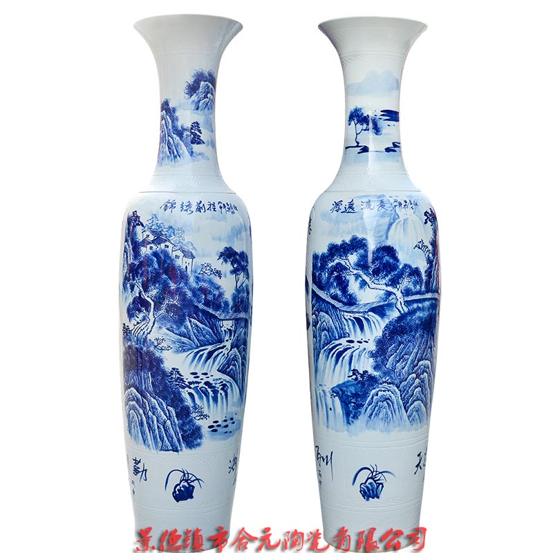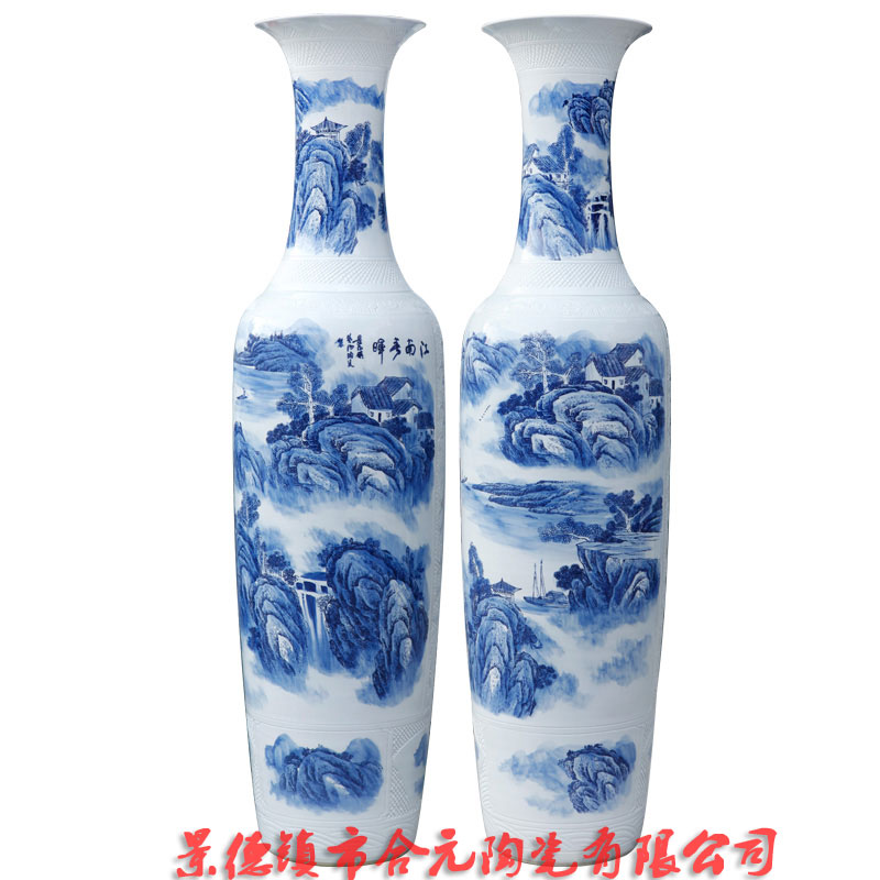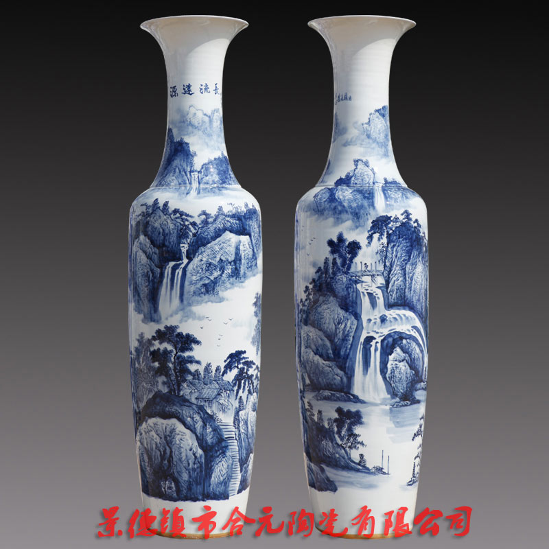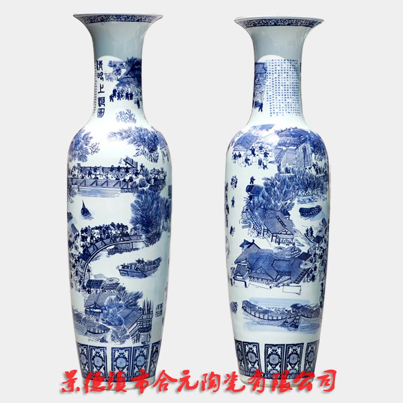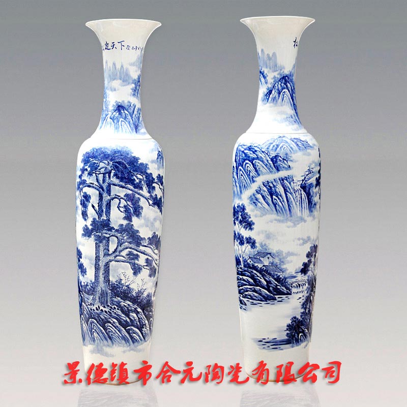 青花瓷以其幽靚明鏡、素 潔雅致、嬌而不艷的獨特風格獨樹一幟,成為東方中國的代名,深受世界人民的喜愛。景德鎮(zhèn)市合元陶瓷有限公司是一家生產(chǎn)青花瓷大花瓶廠家,純手工繪畫,采用優(yōu)質(zhì)原材料高嶺土制作。青花瓷大花瓶廠家生產(chǎn)的大花瓶尺寸規(guī)格齊全,有1米、1.2米、1.4米、1.6米、1.8米、2米、2.2米、2.6米、3米等。青花瓷大花瓶廠家盡情展示中式韻味!手繪青花釉面明澈、色澤亮麗;適用于家居、茶樓、酒店、商場、辦公室擺放。在現(xiàn)代裝飾家居中,青花瓷的出現(xiàn)盡顯清新脫俗、儒雅品味!青花瓷大花瓶廠家生產(chǎn)的青花瓷大花瓶圖案繁多,畫面亮麗,有清明上河圖、青花龍紋、青花迎客松、青花大展宏圖、青花山村曉韻、青花錦繡山河、青花江山多嬌、青花山水畫、青花竹報平安 、青花花開富貴、青花源遠流長等。青花瓷大花瓶廠家生產(chǎn)的器型多種,有箭筒式、觀音瓶型、冬瓜瓶型等。青花瓷大花瓶廠家還可以滿足廣大客戶的定做加字的需求,適合擺放在私人住所、樓盤樣板、辦公室、酒吧、酒店酒樓、連鎖餐廳、主題廣場等各個場所。