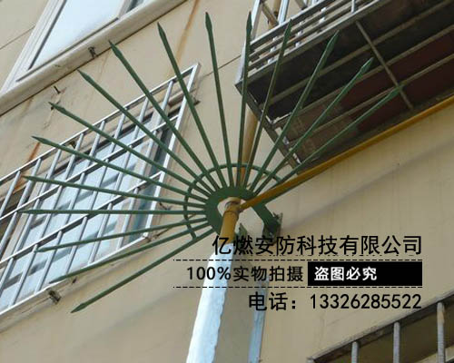 我公司專業(yè)生產(chǎn)各種規(guī)格燃?xì)夤艿婪辣I刺、下水管道防爬刺、圍墻防爬刺。如今小區(qū)的居民樓外墻的水管與陽臺設(shè)計,十分有利于小偷。 的攀爬:水管直徑足有10厘米粗,豎立在外墻上,與陽臺窗戶之間相距盡10厘米