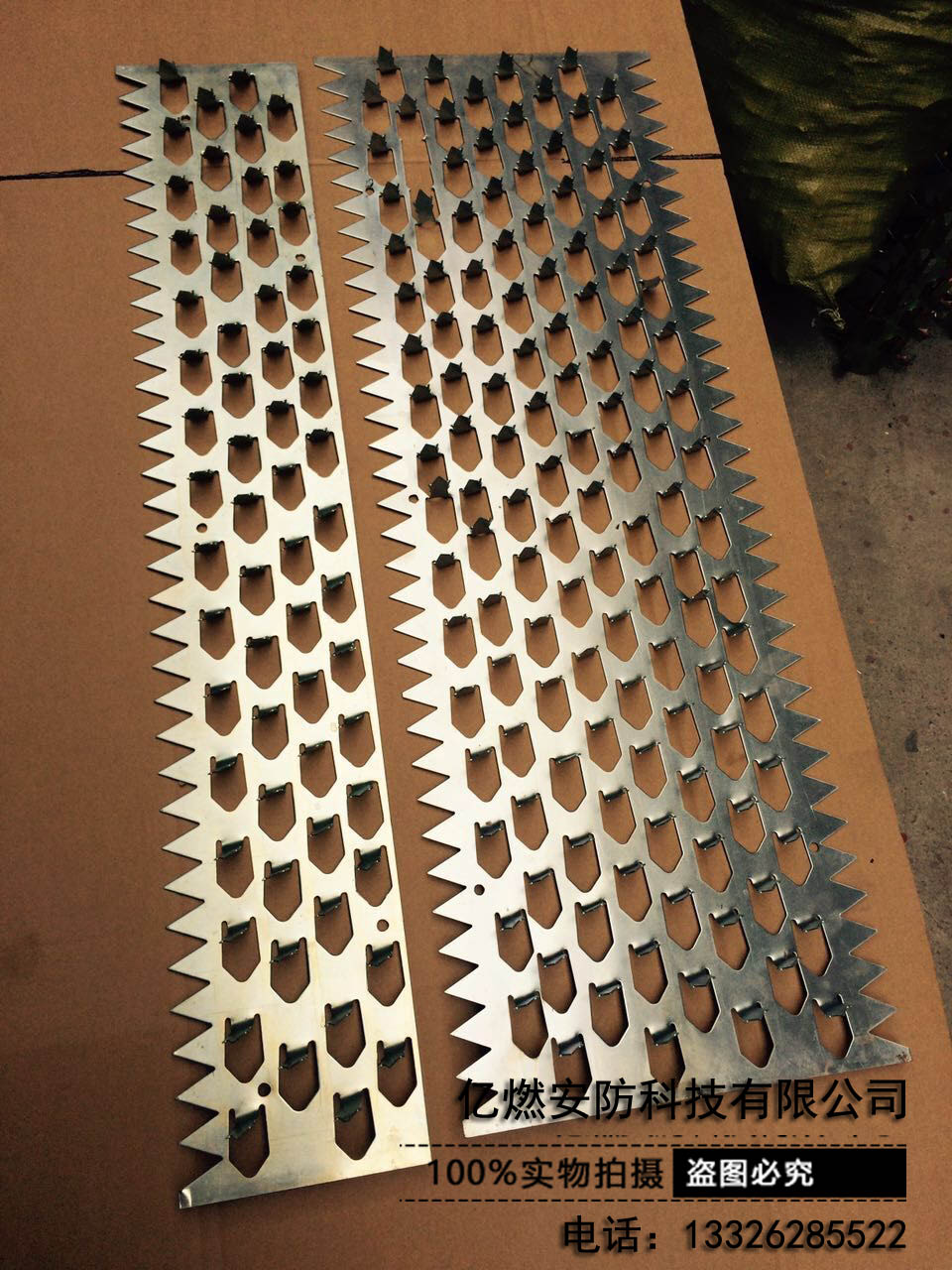 1、以往的防盜刺采用焊接成型工藝,我公司采用沖壓成型的新工藝來代替復(fù)雜的焊接成型,節(jié)約人工成本,價格低于市場焊接產(chǎn)品。