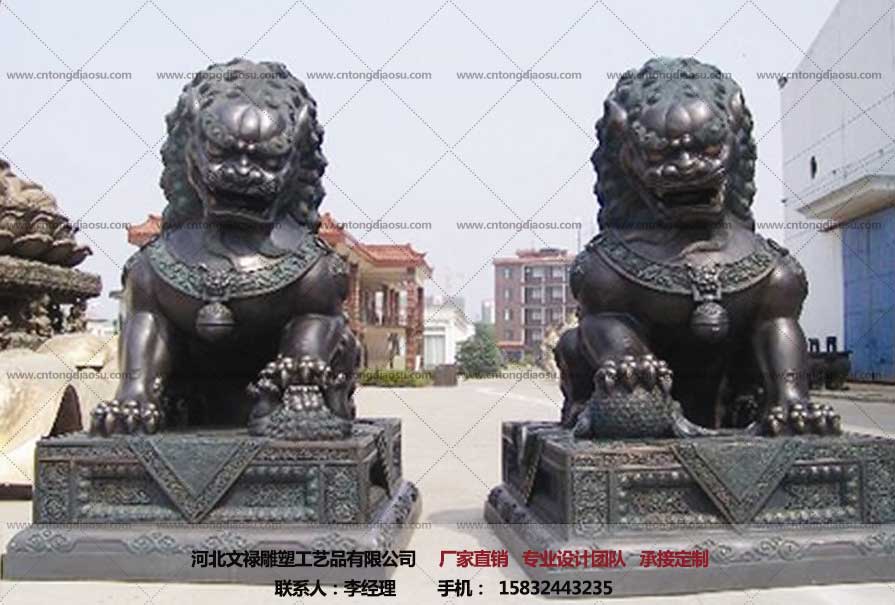 動物雕塑太和門前廣場有一對大銅獅子是清文祿隆年間用銅鑄造的。這是中國較大的一對古銅獅,銅獅的外形呈金字塔形,顯得莊嚴(yán)威武,氣勢雄偉。《日下舊聞考》一四七頁日:”太和門,九間三門,重檐,新鄉(xiāng)銅獅子,崇基,石闌,故宮銅獅子廠,前后陛各出三,左右陛各出一,門前列銅獅二……”銅獅頭頂螺旋卷毛排列疏密整齊,張嘴露牙,似在咆哮,胸前綬帶上雕花精美,前掛鑾鈴,肩掛纓穗,肢爪強(qiáng)勁有力,前肢后肘。