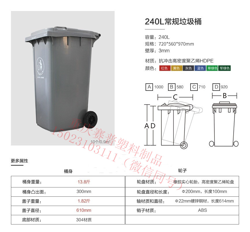 產(chǎn)品分類: 塑料垃圾桶容量:240l