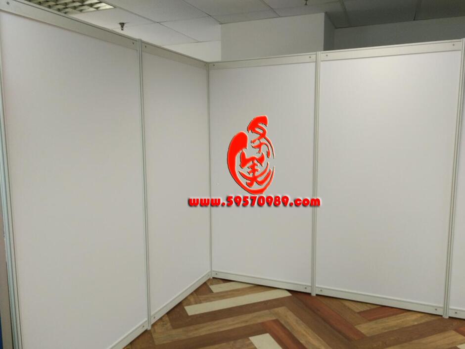 材質跟組合樣式: 活動臨時屏風隔板邊框為鋁合金材質,中間安 裝的板材為3mm厚度的多層板pvc白色膜貼面。