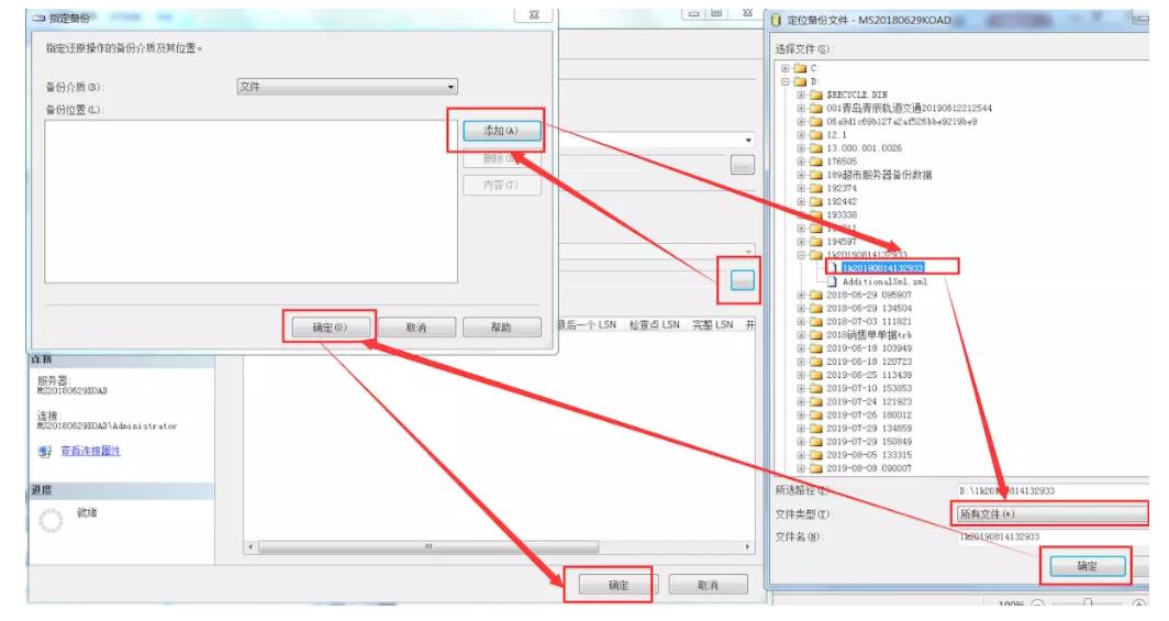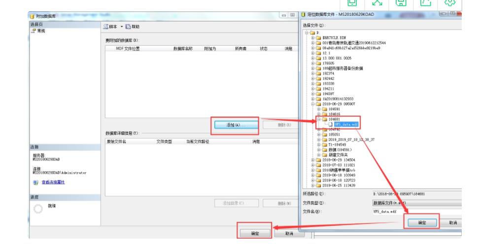 step2:點擊添加,選擇原來安 裝路徑中的數(shù)據(jù),然后點擊確定,所有的賬套庫和系統(tǒng)庫都要附加!