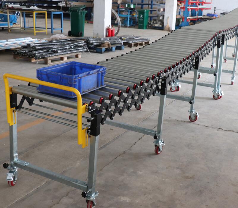 伸縮滾筒輸送機(jī)耐磨、防腐,使用壽命長,保養(yǎng)維修方便,運行平穩(wěn)。輸送能力大,輸送距離長,同時完成多種操作,承載能力大,轉(zhuǎn)速可調(diào),可以快速均勻平穩(wěn)的輸送貨物。