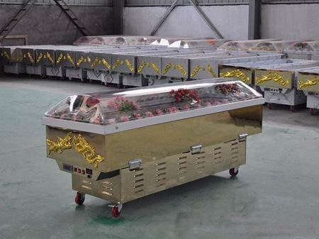 冰 棺廠家白事新款,本公司生產(chǎn)的冰 棺(水晶棺)的外寬70厘米,總長(zhǎng)2.05米,總高1米,棺蓋為pc耐力板,耐高溫耐低溫不怕暴曬,不銹鋼箱體,壓縮機(jī)為銅管的,壽命長(zhǎng).全自動(dòng)電腦控溫,技術(shù)先進(jìn),大功率2臺(tái)壓縮機(jī)的,帶mp3哀樂(lè)播放,棺內(nèi)鮮花開(kāi)放,彩燈環(huán)繞更顯豪華大方,重量為80公斤左右,冰 棺內(nèi)底部是不銹鋼板的,易清洗,耐腐蝕,具有制冷快、使用壽命長(zhǎng),節(jié)能和環(huán)保等特點(diǎn),適用于殯儀館,個(gè)人殯儀出租等