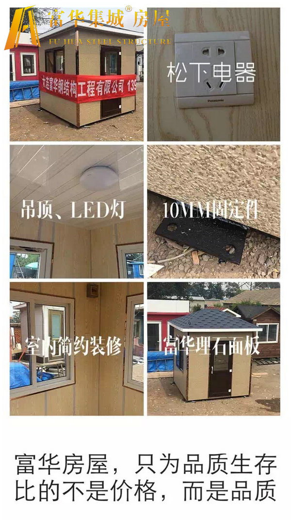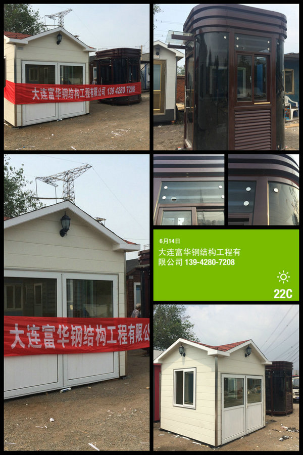 大連收費亭,大連門衛(wèi)房,大連小木屋廠家生產(chǎn)商:大連富華鋼結構工程有限公司 李富華(電話:139-4280-7208 ,其他均非官方,謹防詐騙) 全國物流配送到家,物流貨到付款,安 全省心。http:// / http:// /