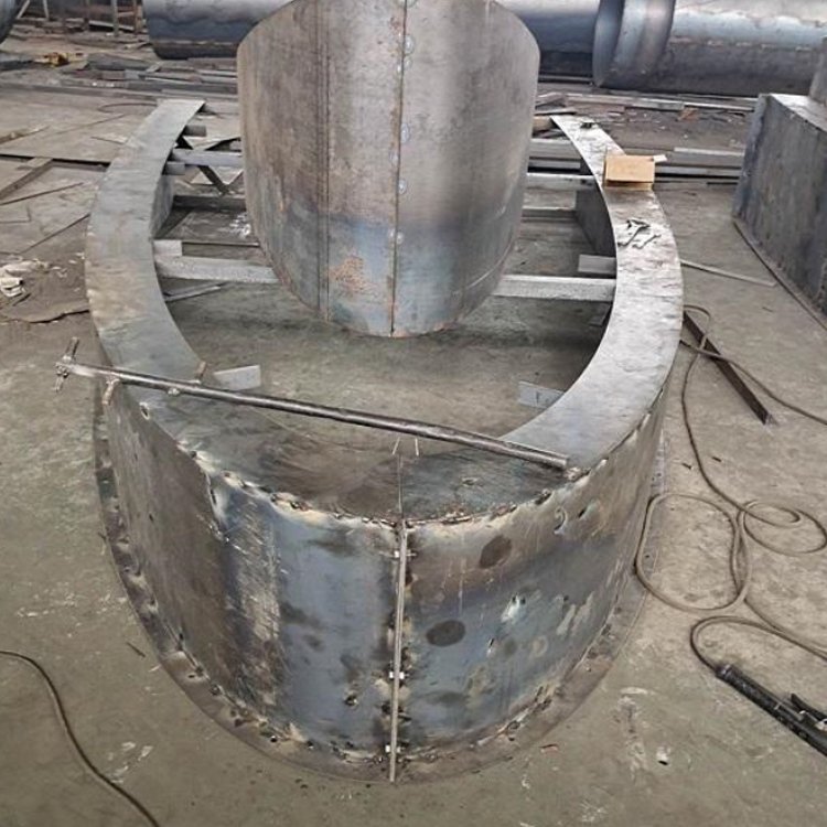 針對不同收費島模具的圖紙設(shè)計,按照施工方的現(xiàn)場施工要求,進行鋼模具的定制加工。島模具采用3毫米面板,5毫米筋板焊接完成,按照形狀的不同,島頭模具以及島尾模具都有明顯的區(qū)別,從長度來看,島頭模具以4米長,島尾為2米長。這是目前制作的收費島模具寸,也有很多異形結(jié)構(gòu)以及尺寸的需要加工。從當(dāng)前混凝土收費島的制作情況來看,很多時候都是依賴于現(xiàn)澆工作,將模板固定在施工現(xiàn)場,內(nèi)部擺放好鋼筋以后,直接進行混凝土澆筑生產(chǎn)。