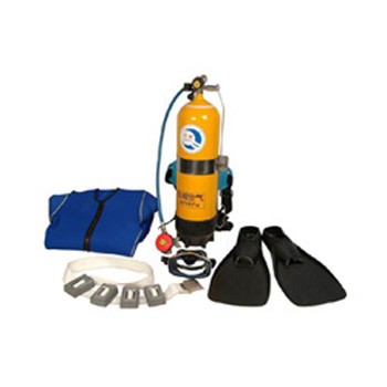 配有浮力背心 , 潛水面罩 1 個(可選配潛水頭盔)、減壓器 1 個、 12l 升氣瓶總成 1 套、配重 1 副( 2 公斤、 3 公斤各 4 塊)、專用工具 1 包(共 11 件)、安全帶 1 副、測壓表總成 1 個、備件 1 盒、濕式服 1 套、腳蹼 1 雙、器材箱 1 只、潛水刀 1 把。