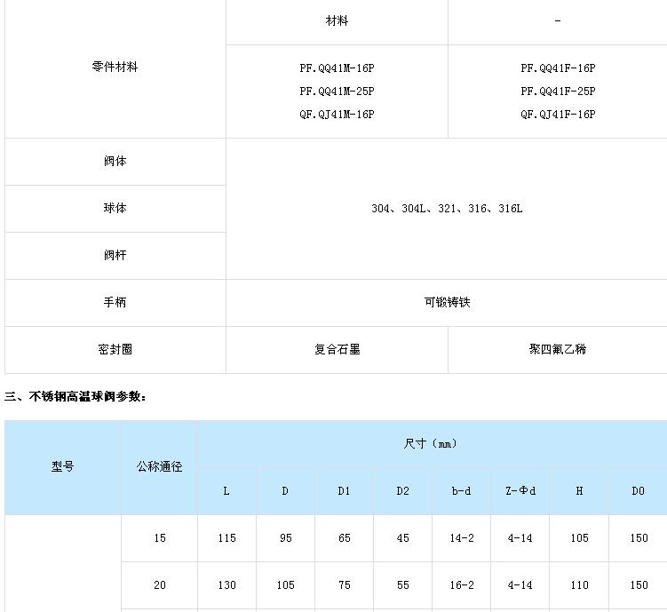 產(chǎn)品名稱:不銹鋼高溫球閥產(chǎn)品型號:qq41m產(chǎn)品口徑:dn15-200產(chǎn)品壓力:0.6~6.4mpa產(chǎn)品材質(zhì):鑄鋼、不銹鋼、合金鋼等產(chǎn)品簡介:制造標準:中國gb、機械部jb、化工標準hg、美標api、ansi、德標din、日本jis、jpi、英標bs生產(chǎn)。閥體材質(zhì):銅、鑄鐵、鑄鋼、碳鋼、wcb、wc6、wc9、20#、25#、鍛鋼、a105、f11、f22、不銹鋼、304、304l、316、316l、鉻鉬鋼、低溫鋼、鈦合金鋼等。工作壓力1.0mpa-50.0mpa。工作溫度:-196℃-650℃。連接方式:內(nèi)螺紋、外螺紋、法蘭、焊接、對焊、承插焊、卡套、卡箍。驅(qū)動方式:手動、氣動、液動、電動。上海惠夏閥門有限公司擁有全球最頂尖的生產(chǎn)設備和技術工程師,有能力按照各國標準以及各種行業(yè)標準生產(chǎn)制造優(yōu)質(zhì)閥門。聯(lián)系電話:15901687301 產(chǎn)品詳情一、不銹鋼高溫球閥性能規(guī)范: