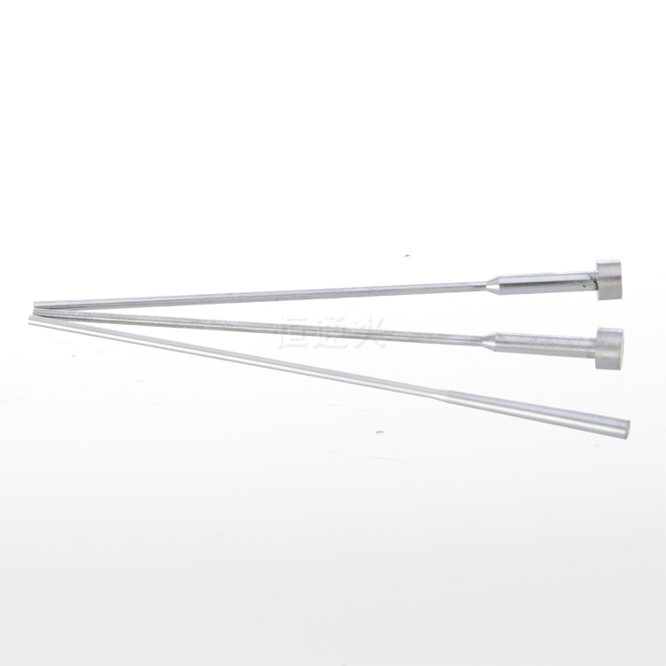 產(chǎn)品材質(zhì)說明:skd61頂針可以耐1600℃高溫,skd61頂針表面氮化處理后可以很好的提高頂針的耐磨性,65mn的頂針因?yàn)槠淦焚|(zhì)較差,品質(zhì)較脆容易斷,大部分塑膠模具已不裝配和使用65mn材質(zhì)的頂針。