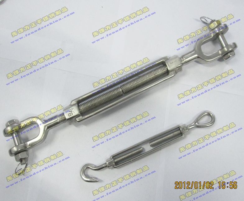 花籃螺絲又稱為索具,用來緊固鋼絲繩等。也叫緊線扣,用于拉緊鋼絲繩,并起調(diào)節(jié)松緊作用,其中oo型用于不經(jīng)常拆卸的場合,cc型用于經(jīng)常拆卸的場合,co型用于一端經(jīng)常拆卸另一端不經(jīng)常拆卸的場合。