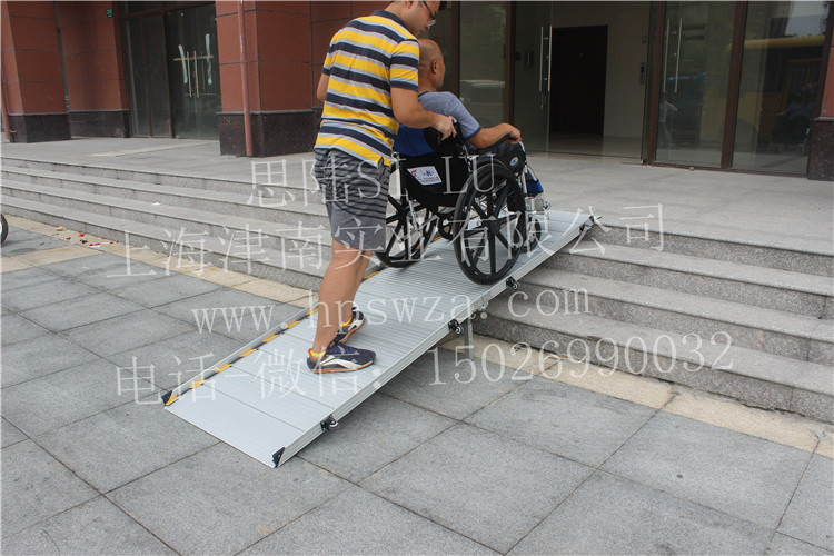 1、 輪椅便攜坡道用于坐輪椅人出行便捷而設計 重量輕 不易氧化 體積小 輪椅斜坡可以用在樓梯 門前臺階