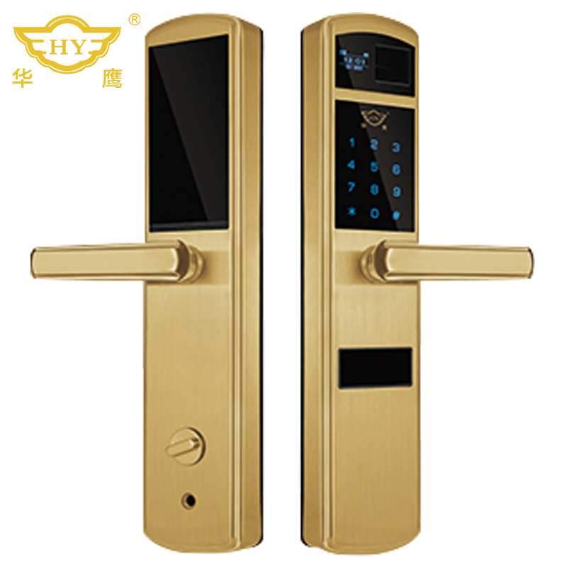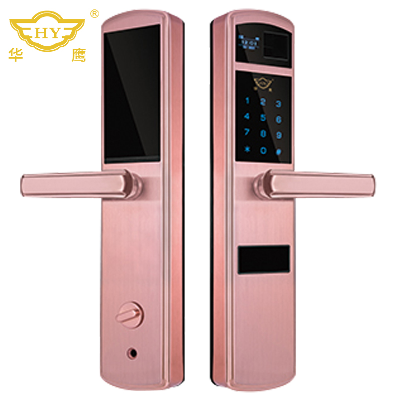 hy-1088紅古銅華鷹不銹鋼智能鎖是一款不銹鋼智能指紋密碼鎖,擁有指紋開門、密碼開門、ic卡開門、遙控開門、應(yīng)急鑰匙開門五合一功能,隱藏式機械鑰匙開門功能。