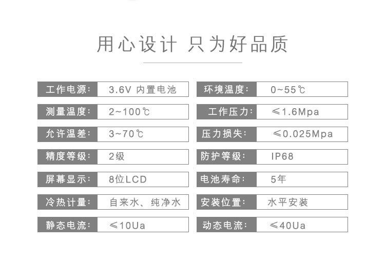 5、儀表采用3.6v鋰電池供電,電池壽命使用可達5年以上;