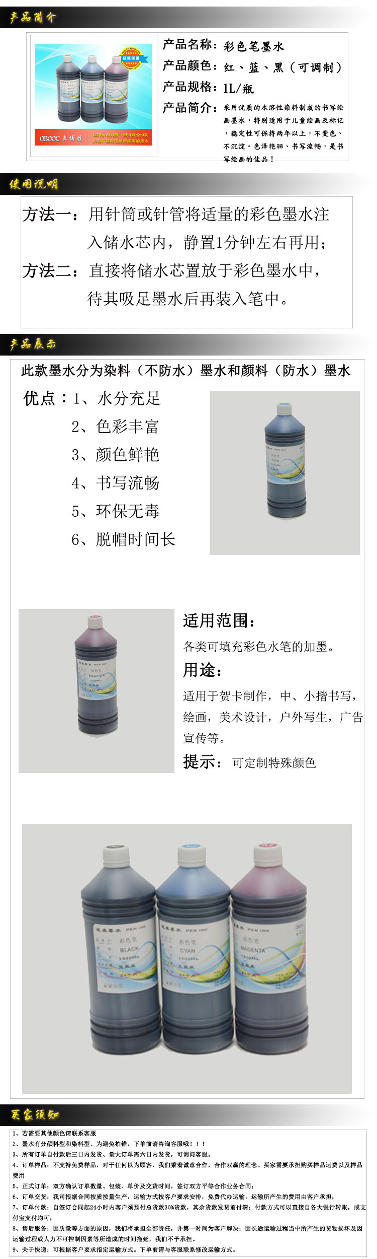 瀏覽:403次[供應(yīng)]兒童繪畫水彩筆墨水 染料墨水 可填充彩色防水墨水