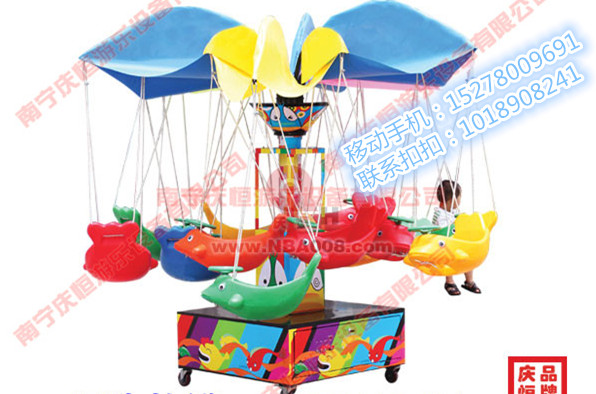 電動(dòng)旋轉(zhuǎn)秋千魚,兒童游樂設(shè)備旋轉(zhuǎn)秋千魚,秋千魚價(jià)格,12座廣場(chǎng)電動(dòng)秋千魚是旋轉(zhuǎn)飛椅和旋轉(zhuǎn)馬的升級(jí)改進(jìn)型產(chǎn)品,外觀更簡(jiǎn)潔,美觀大方。拆卸更方便,12座廣場(chǎng)電動(dòng)秋千魚飛魚是一種適用于公園、廣場(chǎng)、景區(qū)、游樂場(chǎng)、室內(nèi)商場(chǎng)、超市等游樂場(chǎng)所的最新兒童游樂設(shè)備。電動(dòng)旋轉(zhuǎn)秋千魚比傳統(tǒng)的旋轉(zhuǎn)馬精美,飛椅等旋轉(zhuǎn)類產(chǎn)品有著簡(jiǎn)單而又不失豪華,針對(duì)性更強(qiáng),給人孩子們可玩欲望更強(qiáng)烈。秋千魚底座下有四個(gè)萬向輪,其中兩個(gè)可以剎住20x13x20cm 遙控啟動(dòng)和暫停,彩燈為遙控開關(guān)、flash 傘是選購(gòu)件電瓶有定位、固定位置,不能在運(yùn)送過程倒下、摔出,所以要尺寸以便緊固。