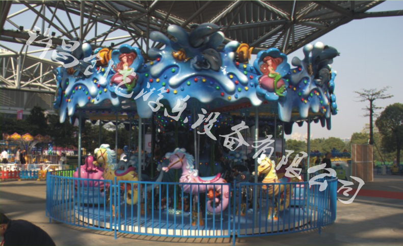 豪華旋轉(zhuǎn)木馬是一款經(jīng)典的游樂(lè)設(shè)備,在任何有游客的公園,廣場(chǎng),游樂(lè)場(chǎng)都能看到木馬的身影。豪華轉(zhuǎn)馬擁有富麗堂皇的外觀,精美華麗的裝飾內(nèi)涵,磅礴的氣勢(shì),絢麗的燈飾和高貴典雅的造型,猶如一頂旋轉(zhuǎn)的皇冠。轉(zhuǎn)馬啟動(dòng)之后轉(zhuǎn)盤(pán)勻速轉(zhuǎn)動(dòng),游客乘坐在色彩斑斕,形態(tài)各異的轉(zhuǎn)馬上奔騰跳躍,仿佛置身仙境般的童話(huà)世界,使游樂(lè)者產(chǎn)生猶如縱馬揚(yáng)鞭、馳騁在草原的感覺(jué),夢(mèng)想由此開(kāi)始向無(wú)窮的天際放飛。