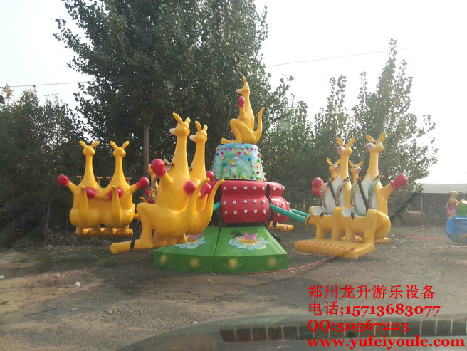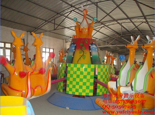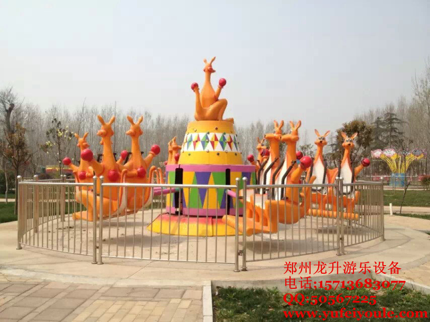 歡樂袋鼠”是一款以彈跳形式前進(jìn)的彈跳機(jī)系列產(chǎn)品,在“狂車飛舞”游樂設(shè)施基礎(chǔ)上更進(jìn)一步開發(fā)的新型游樂設(shè)備,乘客乘坐在袋鼠造型的座椅上,隨著節(jié)奏蹦跳起伏,