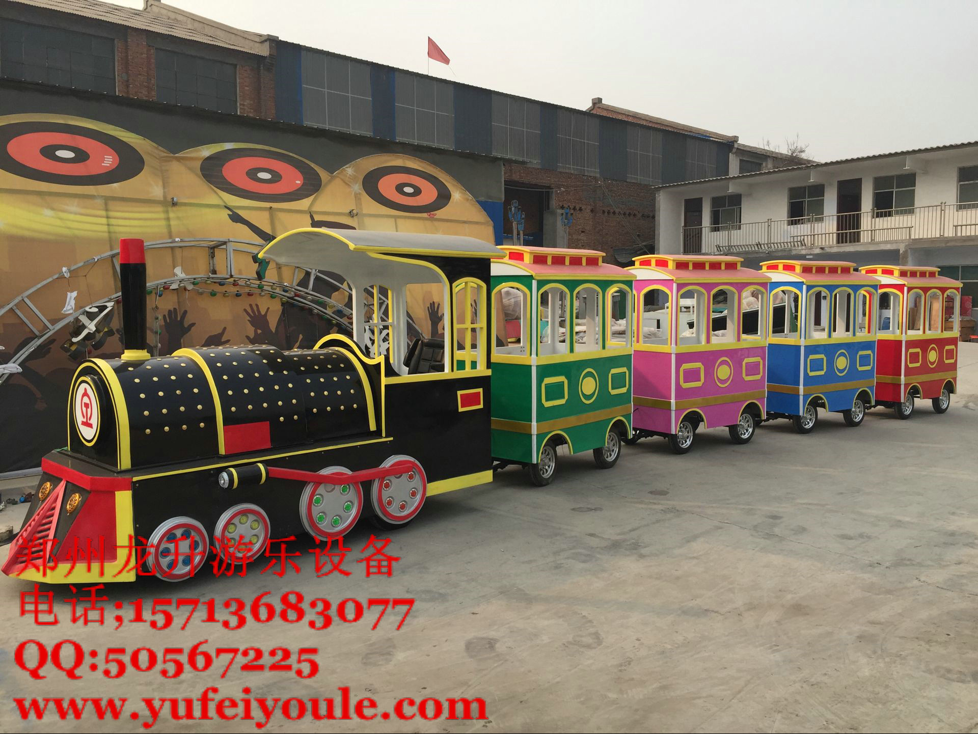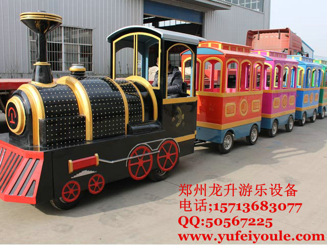 2、無軌小火車:沿景區(qū)的水泥、柏油馬路行駛,通過充氣輪胎與公里配合行駛,稱為無軌觀光火車,