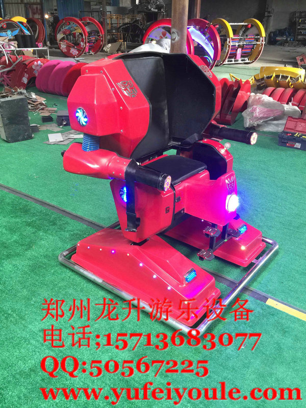 造型科幻、霸氣,燈光絢麗,乘坐方式獨特,吸引力無法抗拒,是游樂產(chǎn)品設(shè)計的一次重大突破。飛行雙搖桿操作,乘客可自由、輕松掌控行駛方向,可前進、后退、原地360度旋轉(zhuǎn)、趣味性超強;高保真動感mp3音樂智能播放,內(nèi)置sd卡插口,用戶可隨意更換歌曲,音量大小還可自由調(diào)節(jié);全數(shù)字控制系統(tǒng),語音報數(shù)功能及電腦計數(shù)功能雙重保障,確保記錄準(zhǔn)確;另設(shè)有0-60分鐘數(shù)字定時器,方便經(jīng)營管理!