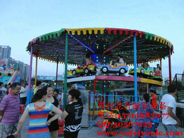 這項(xiàng)設(shè)備是由各種款式的10輛造型美觀車輛組成,沿軌道自行旋轉(zhuǎn)、升降、并配備有造型獨(dú)特的激光打靶,家長(zhǎng)帶著孩子們置身其中可以深深體會(huì)到翻山越嶺和大兵團(tuán)作戰(zhàn)的感覺,是一款?yuàn)蕵沸詮?qiáng),非常刺激新奇的游樂設(shè)備,還配有五顏六色的燈光,尤其在晚間恍若人間仙境一般。